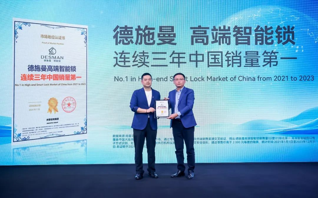 吳慶強(qiáng)調(diào),中國智能鎖市場(chǎng)規(guī)模及市場(chǎng)成熟均領(lǐng)先全球。發(fā)布會(huì)現(xiàn)場(chǎng),中國日用五金技術(shù)開發(fā)中心、歐睿信息咨詢公司、尚普咨詢集團(tuán)三大權(quán)威機(jī)構(gòu)公布了智能鎖全國及全球范圍內(nèi)的調(diào)研過程。調(diào)研報(bào)告顯示,根據(jù)近三年全國市場(chǎng)調(diào)研數(shù)據(jù)顯示,2021-2023年,德施曼高端智能鎖在全國高端智能鎖市場(chǎng)連續(xù)三年銷售量排名第一;根據(jù)近三年全球市場(chǎng)調(diào)研數(shù)據(jù)顯示,2021-2023年,德施曼高端智能鎖在全球高端智能鎖市場(chǎng)連續(xù)三年銷售量和銷售量市場(chǎng)占有率排名第一。